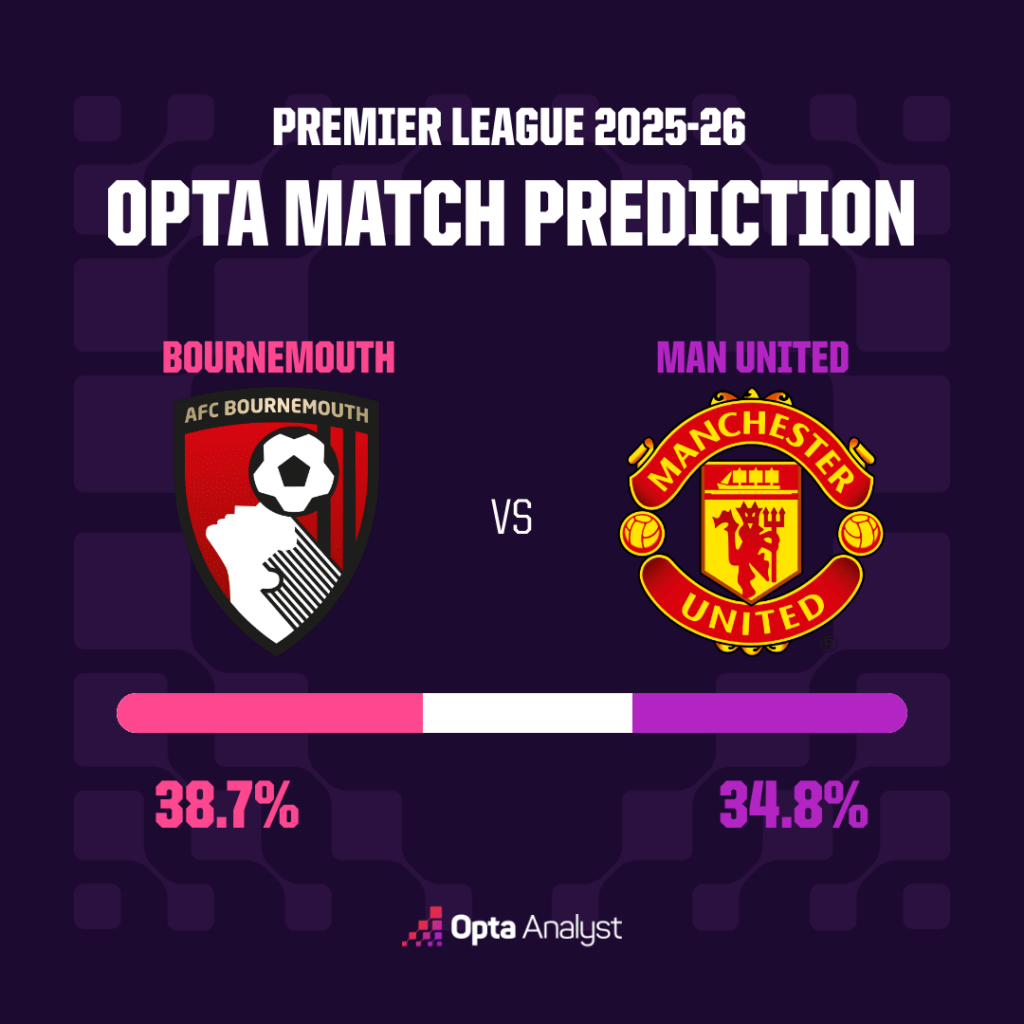 Overall, despite Manchester United's soaring form, Bournemouth possesses stability and home advantage. Opta's prediction indicates this will be a balanced match where any minor mistake could determine the final outcome.