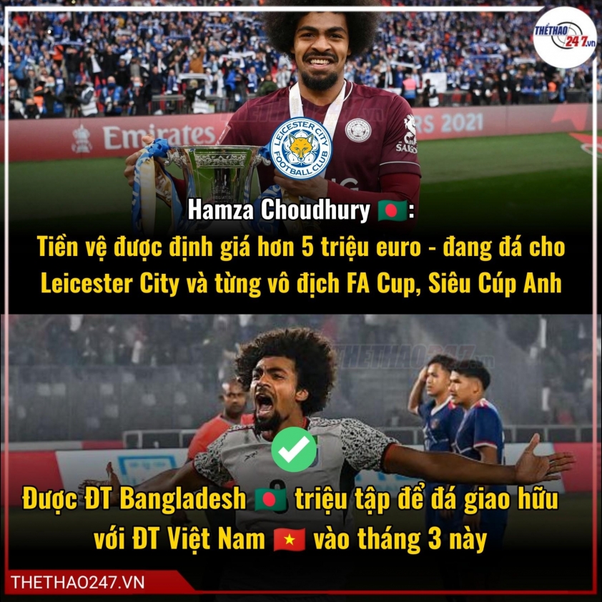 The most prominent figure is midfielder Hamza Choudhury, a name who previously played in the English Premier League for Leicester City. The 28-year-old player quickly became a pillar of the Bangladesh team, scoring 4 goals in just 7 appearances. Choudhury developed in Leicester's academy from age 7, once played for England U21, and with the club won the FA Cup 2020/21, the English Super Cup 2021, and the Championship title 2023/24.