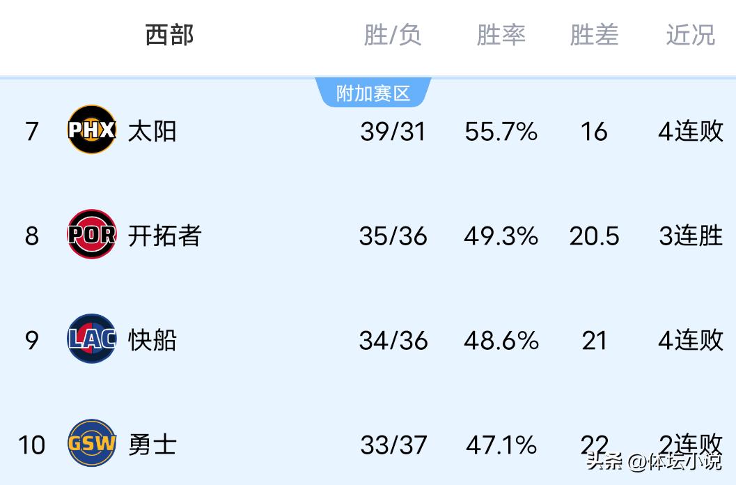 On March 22 Beijing time, the NBA regular season continued its fierce battles yesterday. In several closely watched matchups, the Warriors suffered a 101-115 defeat to the Pistons, the Hawks lost 95-117 to the Rockets, the Celtics overpowered the struggling Grizzlies 117-112, the Trail Blazers narrowly beat the Timberwolves 108-104, and the Raptors fell 115-121 to the Nuggets. This results in a chaotic Western Conference standings: Rockets fourth, Nuggets fifth, Timberwolves sixth, and the Trail Blazers climb to eighth place!