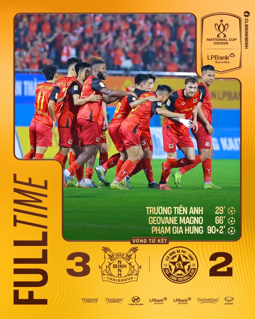 Hero Pham Gia Hung becomes the focal point after scoring the decisive goal to help Ninh Binh FC achieve a thrilling victory in the quarterfinals of the 2025/26 National Cup. The goal in the 90+6 minute not only secured a ticket to the semifinals but also marked a crucial turning point for this individual player ahead of his return to the national team.