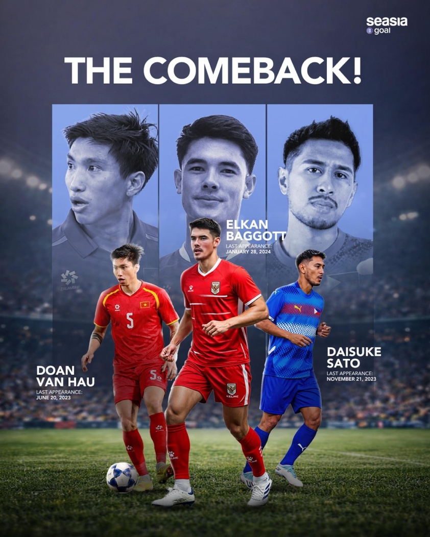 Notably, Vietnam national team defender Doan Van Hau was listed among the "three major names" in the region returning to their national teams after a long absence. Specifically, Seasia Goal wrote: "Three major names have rejoined their national teams, including Doan Van Hau (Vietnam), Elkan Baggott (Indonesia), and Daisuke Sato (Philippines)." These are all players who previously held important roles for their national teams but were sidelined for various reasons, particularly injuries.