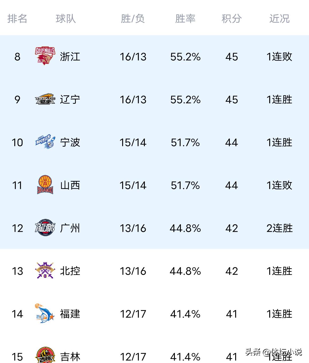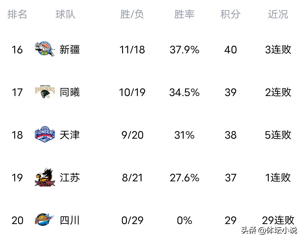 With Beijing losing to Jilin in a surprising upset, Shanghai decisively defeated Guangdong, and Sichuan fell to Shandong, the CBA rankings have been released.