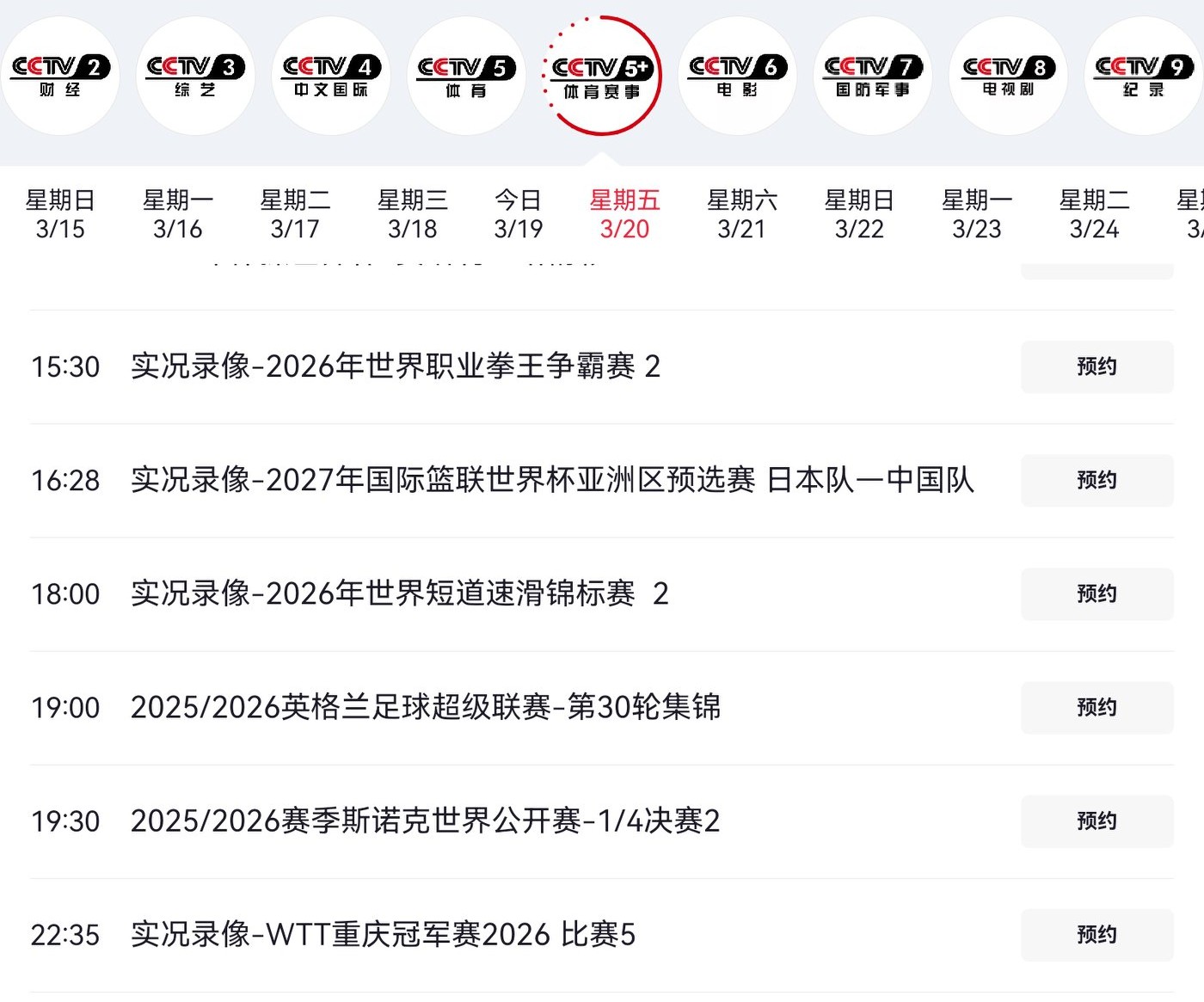 The detailed live broadcast plan for CCTV-5 and Yangshipin is shown in the image below.