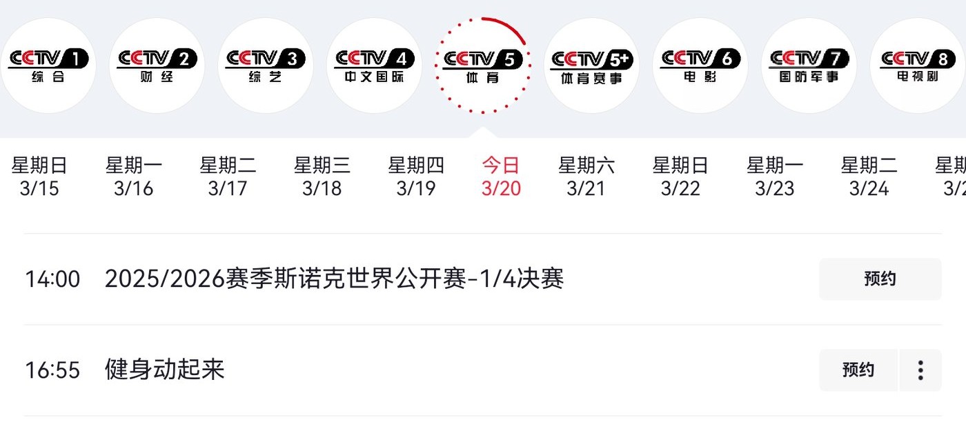 CCTV-5 is most likely to broadcast the Table 1 match at 2 PM today.However, I hope they will broadcast Wu Yize's match against Mark Allen.
