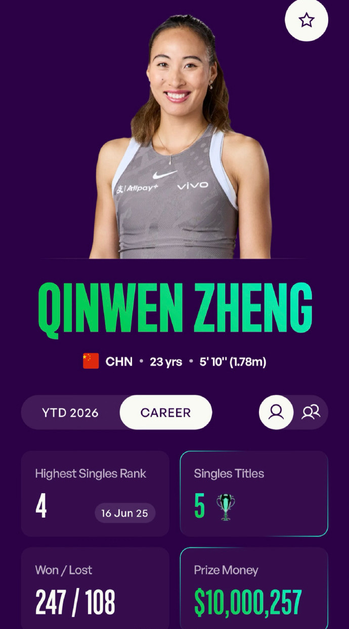Chinese top player Zheng Qinwen confirmed her participation in this event. Meanwhile, good news about Zheng arrived: according to the latest WTA official data after the Indian Wells tournament, Zheng Qinwen's career total prize money has surpassed $10 million, making her the third mainland Chinese player after Li Na and Zhang Shuai to achieve this milestone. Congratulations to her!