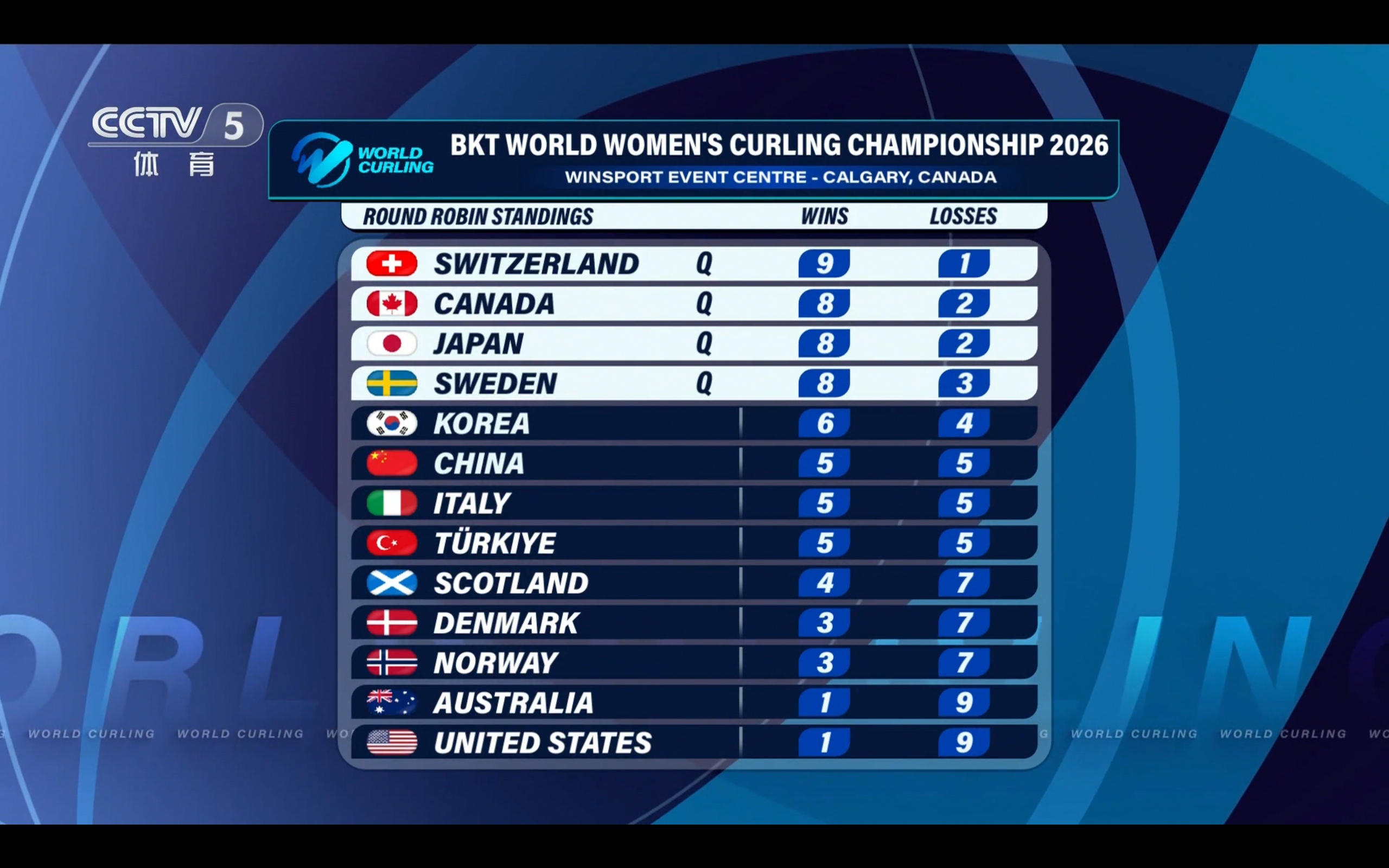 Today's match is extremely important for the Chinese team, it can be described as critical. If they lose, they will essentially be eliminated from advancing. The qualification rule states that the top six teams from the round-robin stage advance to the knockout stage. Currently, China has a record of 5 wins and 5 losses, ranking sixth, while Korea has 6 wins and 4 losses, ranking fifth. If the Chinese team loses, their ranking will fall outside the top six. The historical match record between China and Korea shows China with 1 win and Korea with 4 wins. This indicates that Korea's overall strength is superior to China's. Personally, I predict Korea will win 8-6 or 8-7 against China. I hope that Wang Rui, as the fourth player (skip), can improve her success rate on crucial shots, minimize errors, and pull off an upset victory.