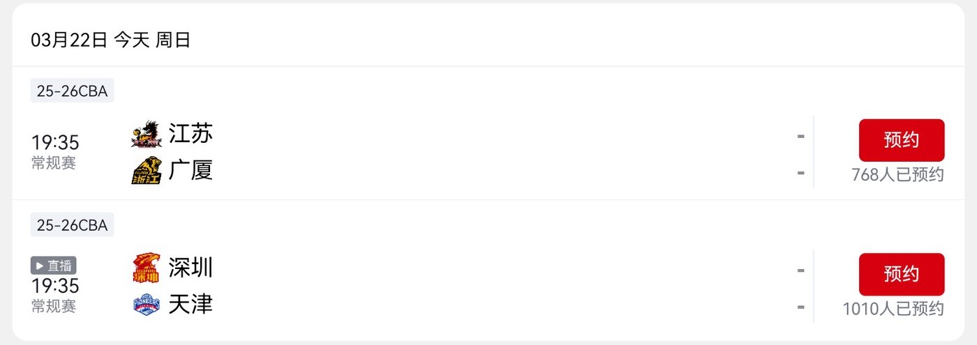CBA regular season schedule today (March 22, 2026): Shenzhen Marco Polo vs Tianjin Pioneers, live on CCTV-5.