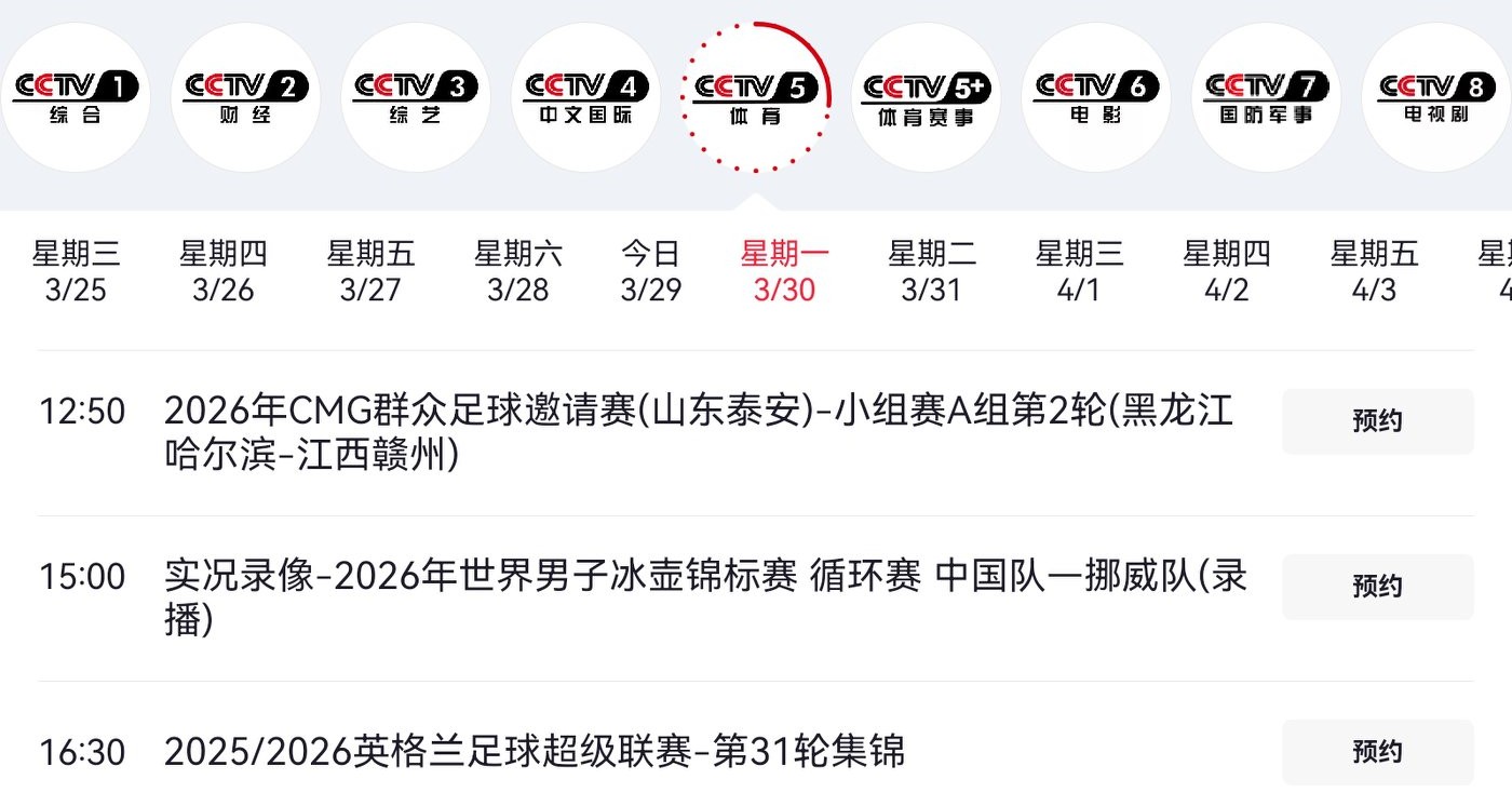 CCTV-5 will replay both matches from today, details as shown in the image below.