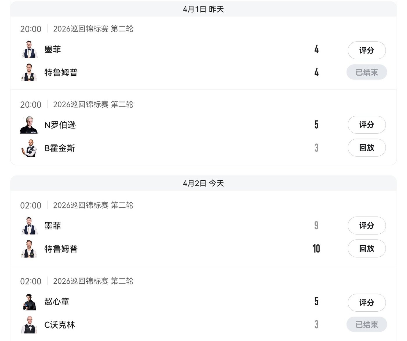 4. Additionally, at 2 a.m. tomorrow, Zhao Xintong and Wakelin will continue with the second stage of their match. We anticipate Zhao Xintong winning and advancing to the semifinals.